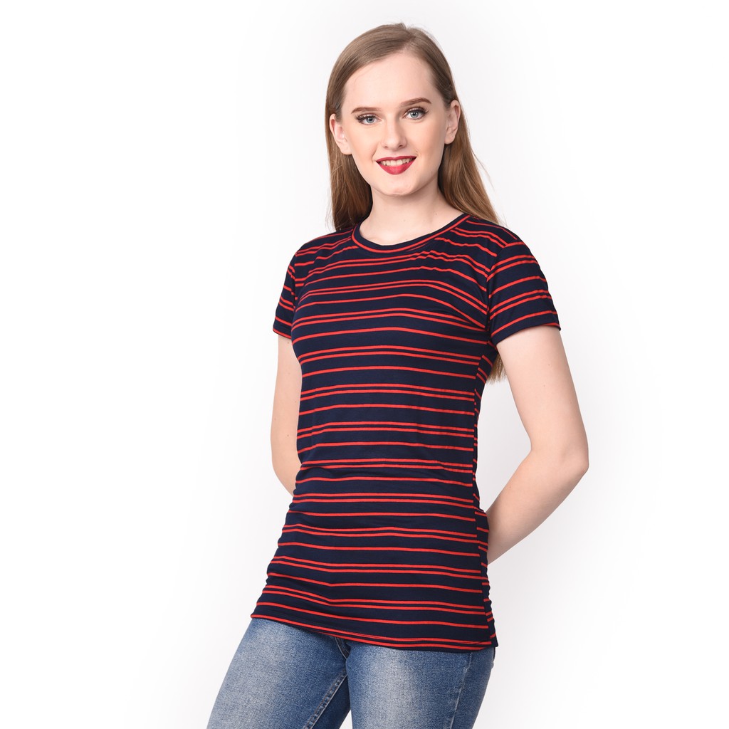 PAKAIAN BAJU MURAH BAJU WANITA KAOS BELANG L STRIPE . Sumber Gambar : shopee.co.id
