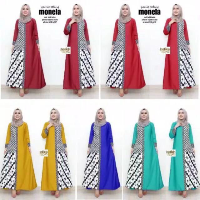 Gamis Kaos Seling Monela Kombinasi Katun Batik Wanita . Sumber Gambar : shopee.co.id